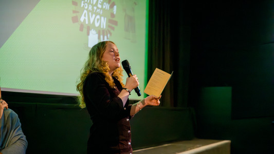 Laura Reineke of Friends of the Thames scooped up a vessel of Thames water and along with London swimmer Blu Edmunds, brought the water to a screening of Rave On For The Avon. Laura and Blu joined Director Charlotte Sawyer and poet Meg Avon in a Q&A following the screening.